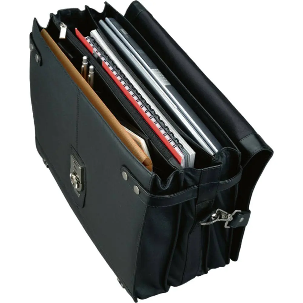 Aktentas met overslag, afneembare schouderriem, verstelbare schouderriem en slot. Binnenafwerking: gevoerd laptopvak, hoofdvak en compartiment met ritssluiting, organizer vak met twee pennenhouders en smart phone compartiment.