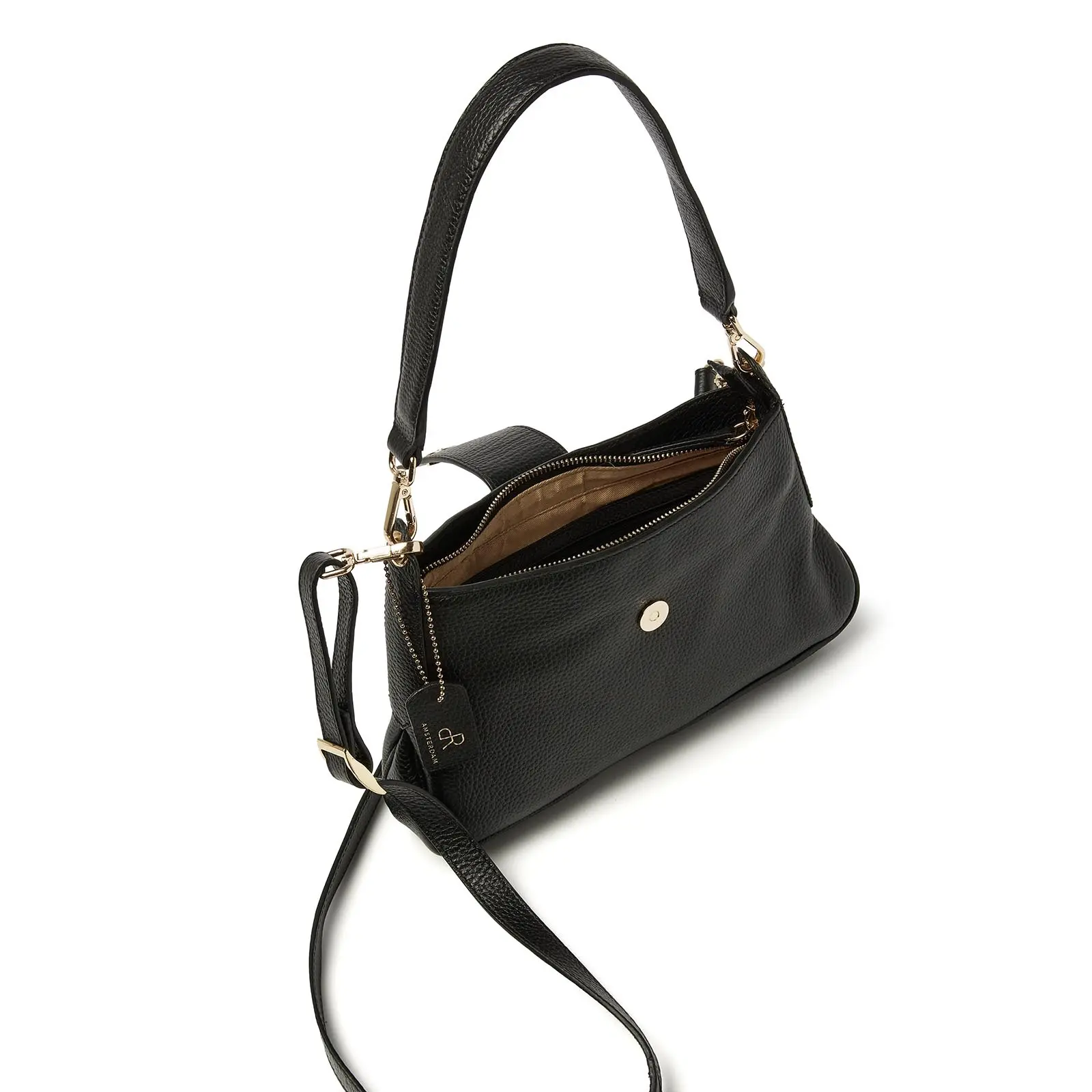 Deze veelzijdige hand-/schoudertas is perfect voor elke gelegenheid en biedt meerdere draagopties. Dankzij het verstelbare handvat kan de tas gemakkelijk over de schouder gedragen worden, terwijl de afneembare en verstelbare schouderriem ideaal is voor gebruik als crossbodytas. De tas is gemaakt van hoogwaardig rundleder en afgewerkt met oog voor detail, wat zorgt voor een tijdloze en duurzame uitstraling.